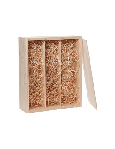 Dan voorzien wij gratis nog een laagje houtwol zodat de flessen nog mooier uitkomen in deze leuke verpakking.