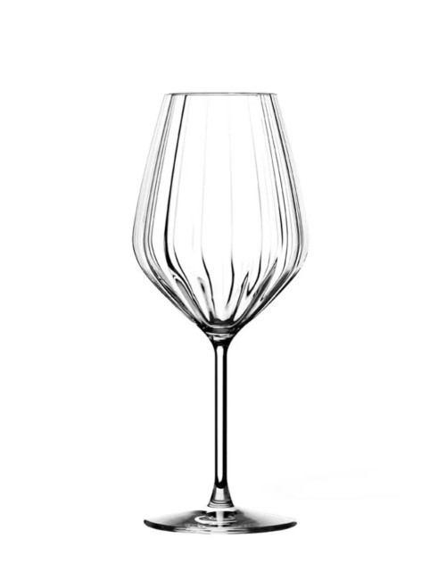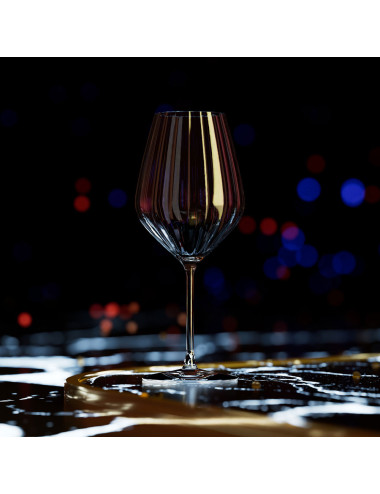 Een stijlvol wijnglas met een origineel en moderne uitlijning.