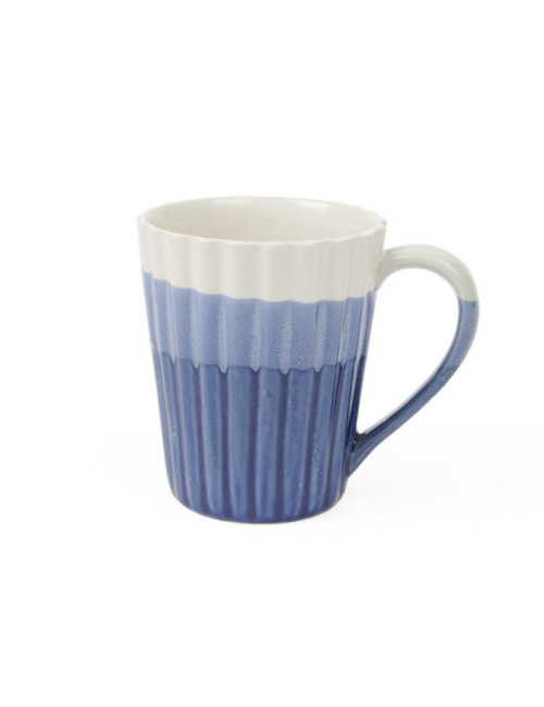 Geribbelde koffiemok die onmiddellijk vakantiegevoel oproept.