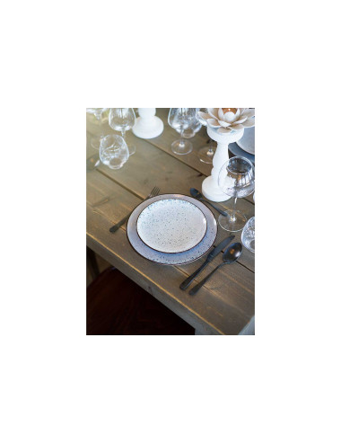 Dit service met leuke blauwe vlekjes komt ongetwijfeld tot zijn recht in jouw interieur. Het past zowel in een rustiek als een moderne inrichting.