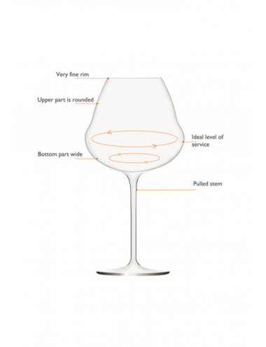 Een vloeiende en gecontroleerde rotatie wordt versterkt door de bodem van het glas die de wijn in staat stelt zich uit te drukken en het volledige scala van geconcentreerde aroma's vrij te laten. dankzij de smalle bovenbocht gaan er geen aroma’s verloren.
